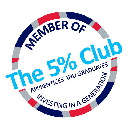 The 5% Club is a movement of more than 1,000 employers providing ‘earn and learn’ opportunities to develop the skills and talents people need to become more employable and create meaningful careers. Companies joining The 5% Club commit to raising the number of apprentices, sponsored students and graduates on formal programmes to 5% of their total workforce within five years. Members are also asked to publicly report their progress in their Annual Report. Existing members range from SMEs to FTSEs and cover all sectors including engineering, transport, and financial services.